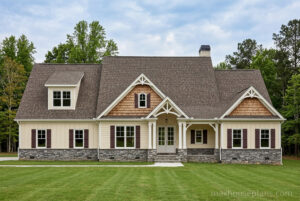 The upper level includes a study loft, 2 bedrooms with walk in closets and a jack and jill bath. The lower level can be finished to include a recreation room, kitchenette, game room, a full bath, and two additional bedrooms. The rear of the house features ample porches and a wall of windows at the rear of the family room, breakfast room, and master suite. Stone, board and batten, cedar shake, and craftsman details complete the rustic yet traditional look of the Stonegate.