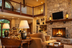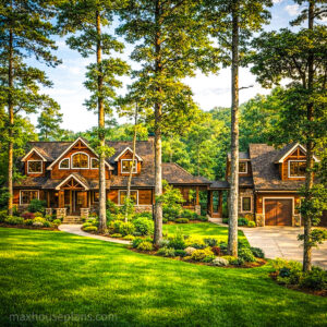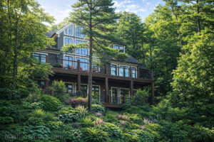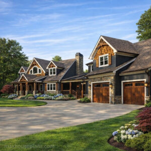 Banning Mills Lodge is a 5-bedroom, 4.5-bath mountain lodge that delivers 2,488 square feet across three stories with a detached 3-car guest garage and a bridge connecting it to the main home. I designed this plan for sloping lake and mountain lots where you want a serious home with lodge-scale features in a footprint that is not overwhelmingly large.