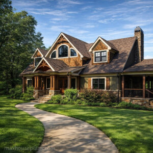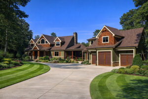 The Banning Mills Lodge plan is available for $1,495. Similar lodge-scale plans include Camp Stone, Baker Lake Cottage, Asheville Cottage, and Hunter’s Bend.