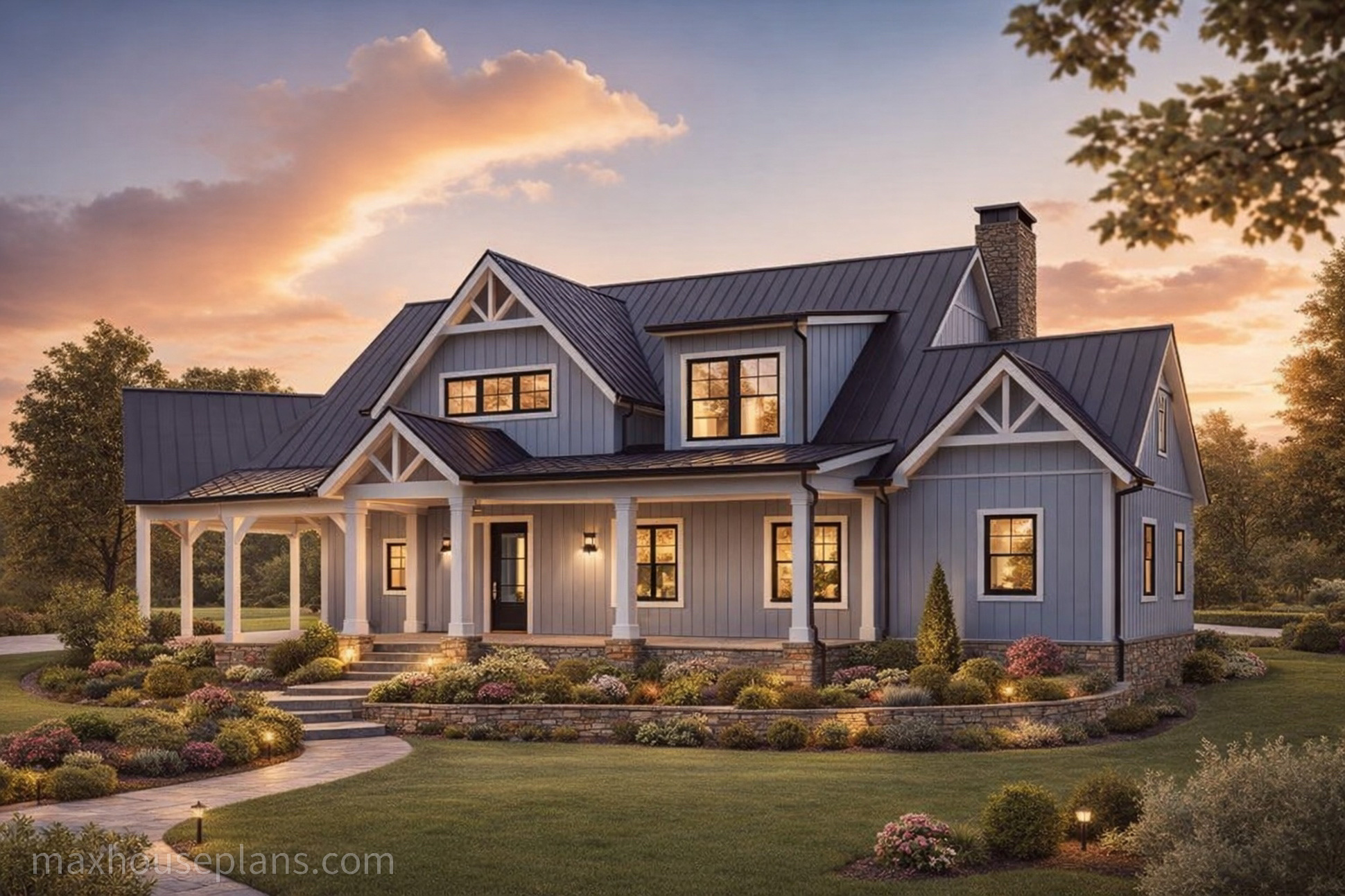The Modern Farmhouse plan is available for $1,495. For more farmhouse designs, explore Carolina Farmhouse, Forever Farmhouse, Low Country Farmhouse, and Madison Farmhouse.