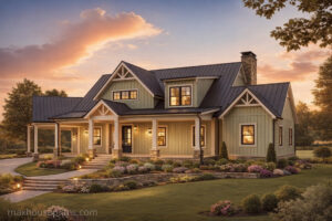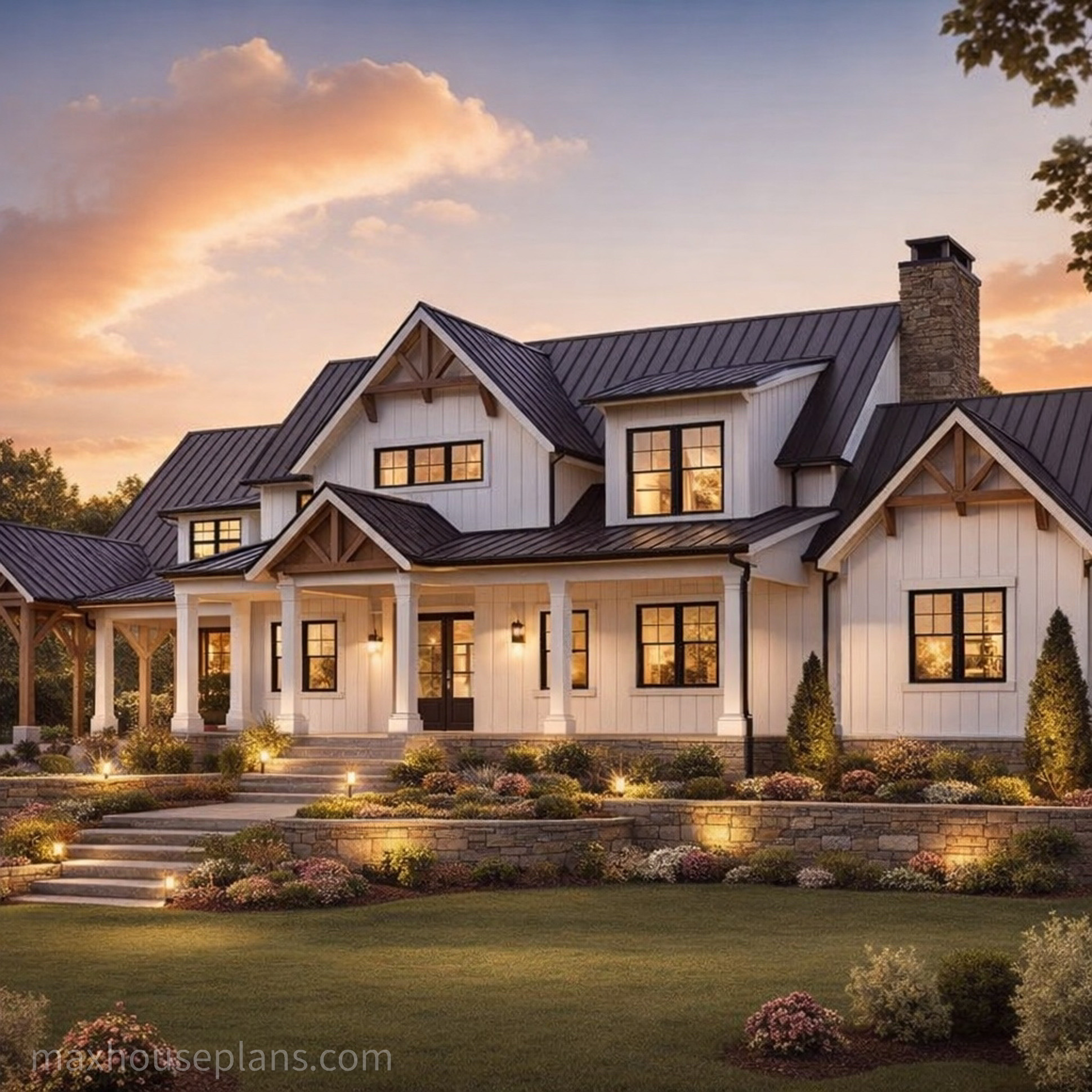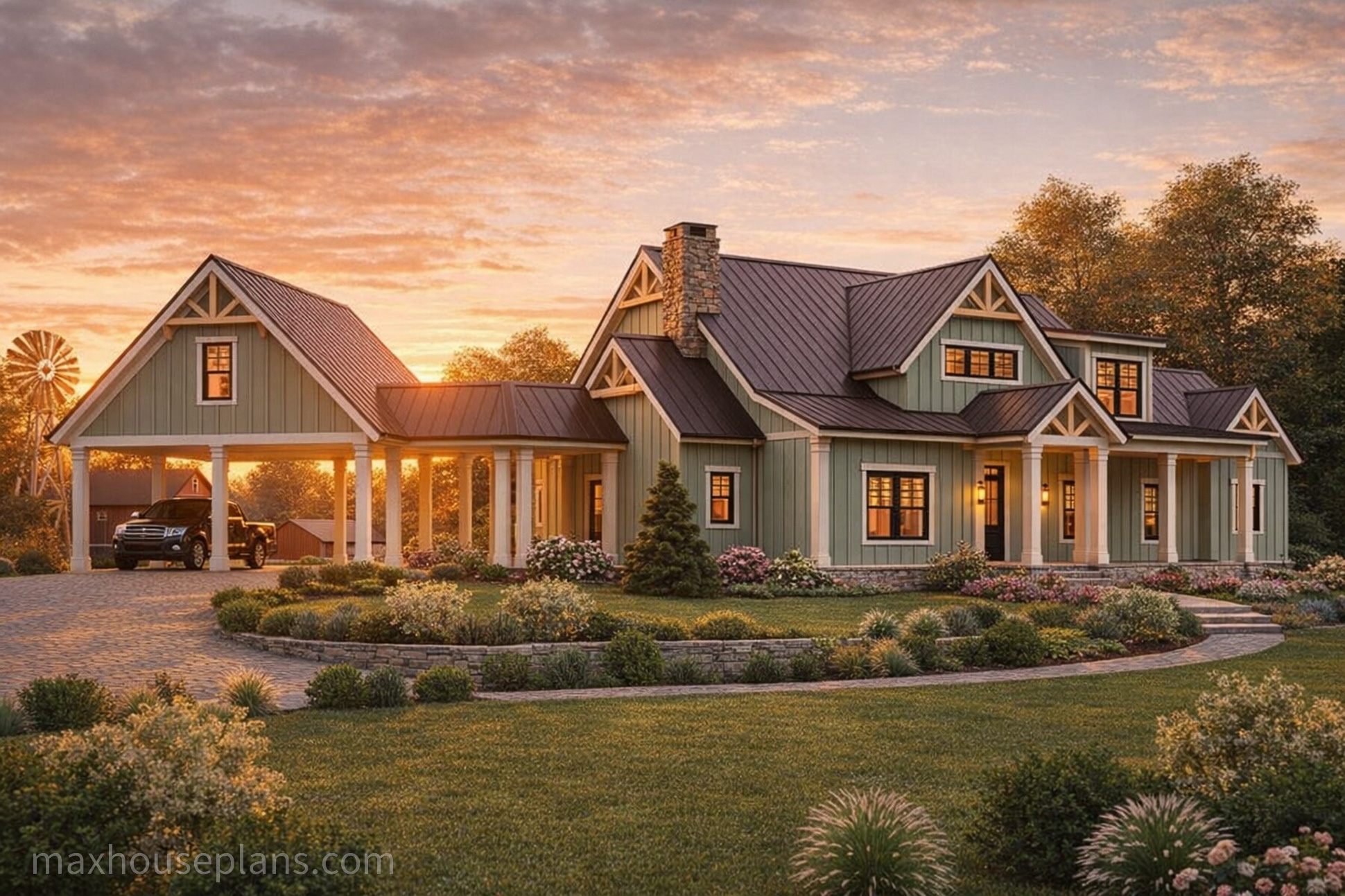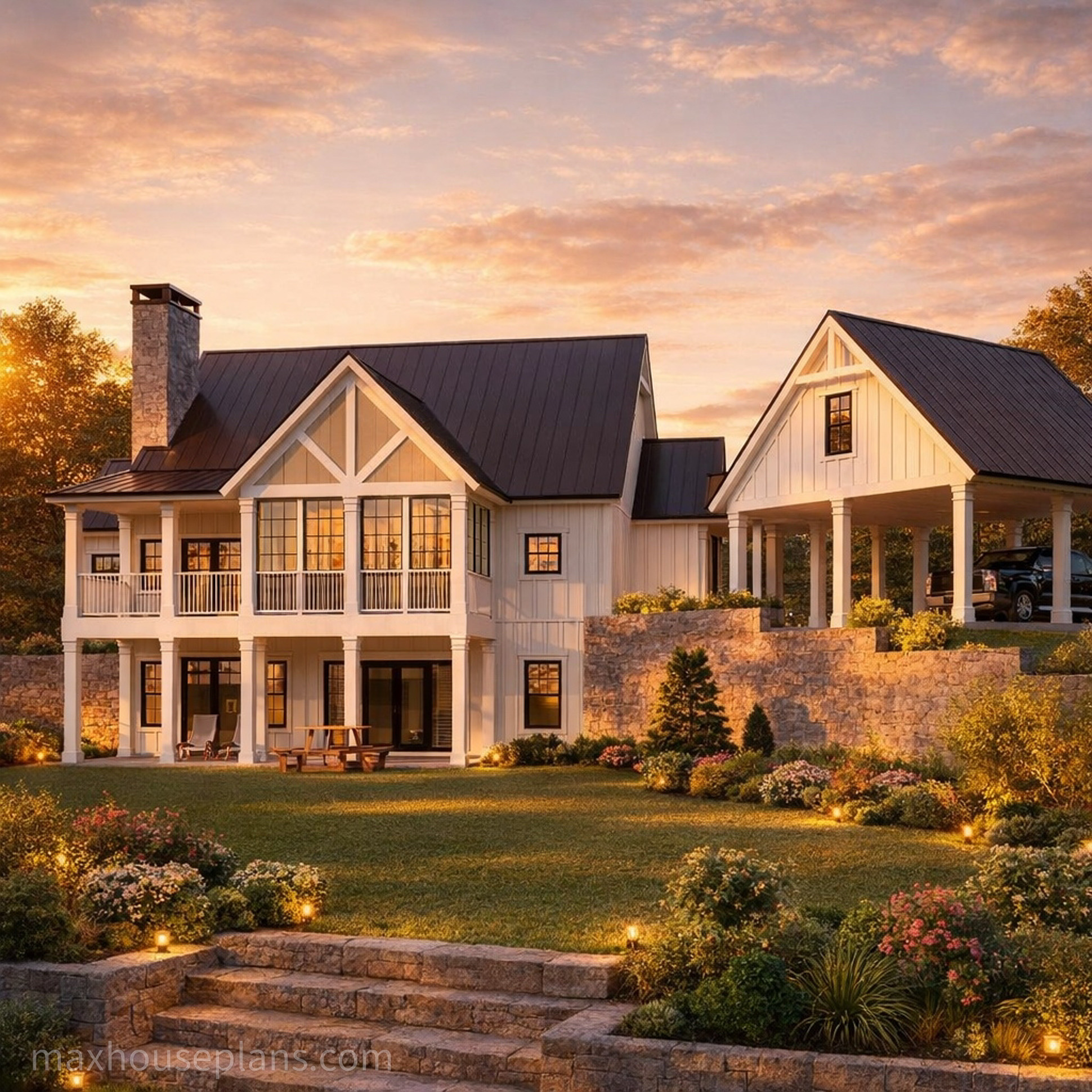 I designed the Modern Farmhouse as a 4-bedroom, 3-bath home that delivers 2,914 square feet of open living across two stories with a carport and breezeway. This is the plan for the buyer who wants modern farmhouse style with vaulted rooms, a study, a mudroom, and enough flexible space to handle everything from movie night to holiday hosting.